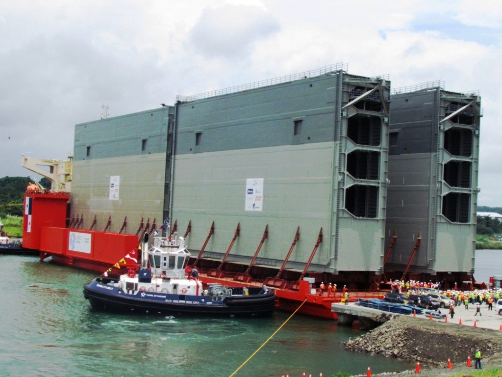 Las primeras cuatro compuertas rodantes del tercer juego de esclusas, de un total de 16, como parte del proceso de ampliación aprobado y en ejecución, fueron recibidas en la entrada atlántica del canal de interoceánico de Panamá, según da cuenta un reporte facilitado a Trabajadores digital por el colega panameño Enrique Watts Ríos, periodista en la ciudad de Colón.