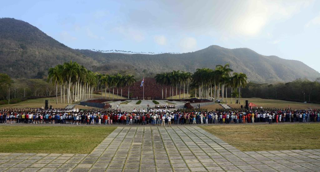 En gesto de eterno tributo a los combatientes caídos fueron colocadas, junto a la llama eterna del Mausoleo, ofrendas florales a nombre del General de Ejército Raúl Castro Ruz y del pueblo de Cuba, y se dispararon 21 salvas de artillería.