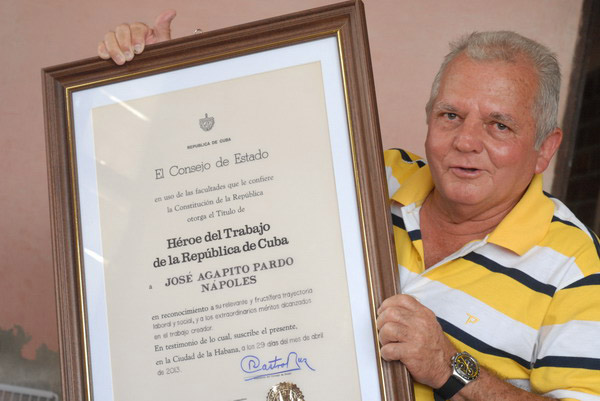 Lleva 47 años en el mismo puesto de trabajo. No se queja; no está cansado, más bien “pelea” si alguien le sugiere el retiro. Lo único que sabe hacer, desde muy joven, es trabajar; pero hoy, a pesar del tiempo, José Agapito Pardo Nápoles tiene nuevas motivaciones para seguir como saborista de la fábrica de Helados Coppelia, en Camagüey. La razón, muy sencilla: fue merecedor de la condecoración Héroe del Trabajo de la República de Cuba, este año.