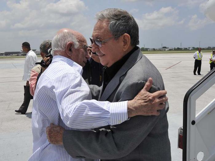 En el aeropuerto internacional José Martí, Raúl y la delegación que lo acompañó fueron recibidos por los miembros del Buró Político José Ramón Machado Ventura, Segundo Secretario del Comité Central del Partido Comunista de Cuba, y el General de Cuerpo de Ejército Abelardo Colomé Ibarra, ministro del Interior.