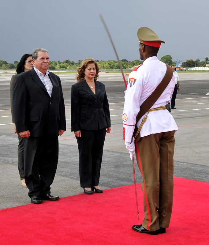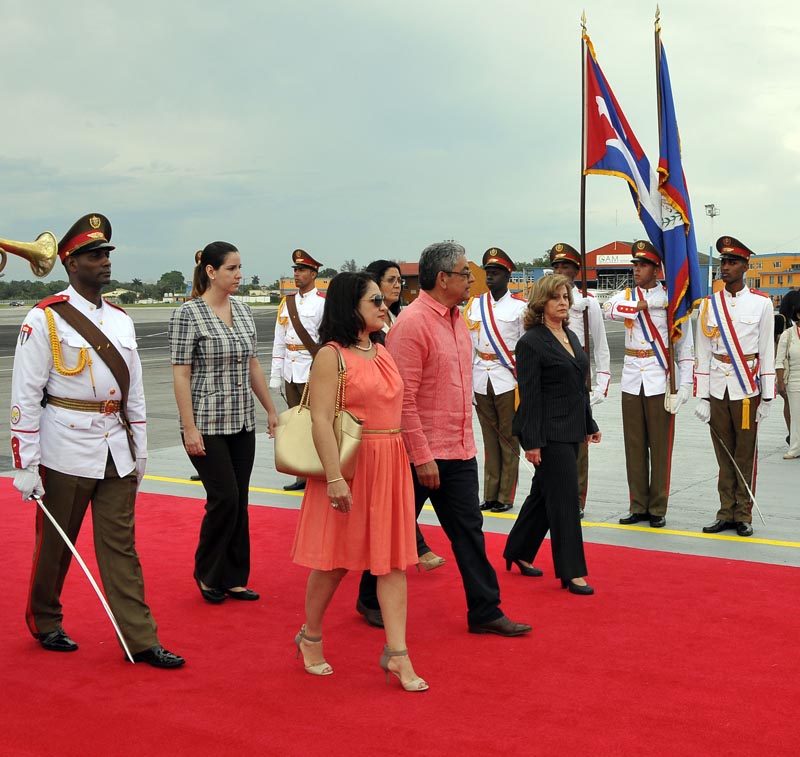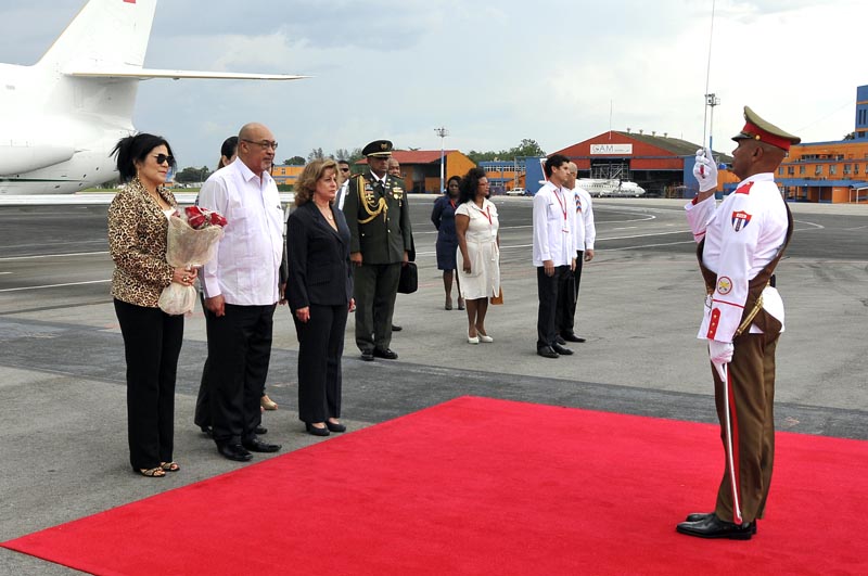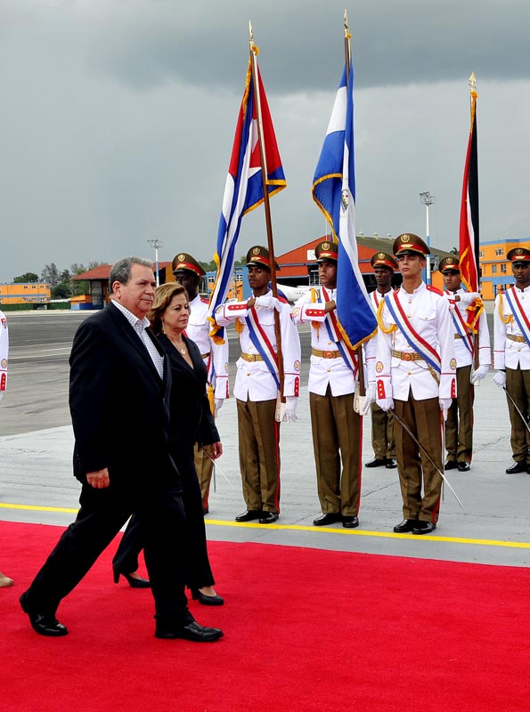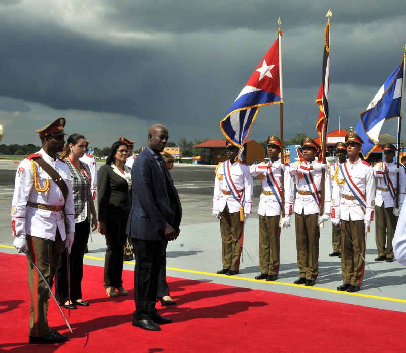 Alrededor de las 4:30 de la tarde bajo un encapotado cielo fue recibido por la Ministra de Justicia, el Primer ministro de Trinidad y Tobago, Keith Rowley, quien agradeció la cálida bienvenida a nombre del pueblo y Gobierno de su país. También dijo traer saludos de los colaboradores cubanos que allí trabajan.