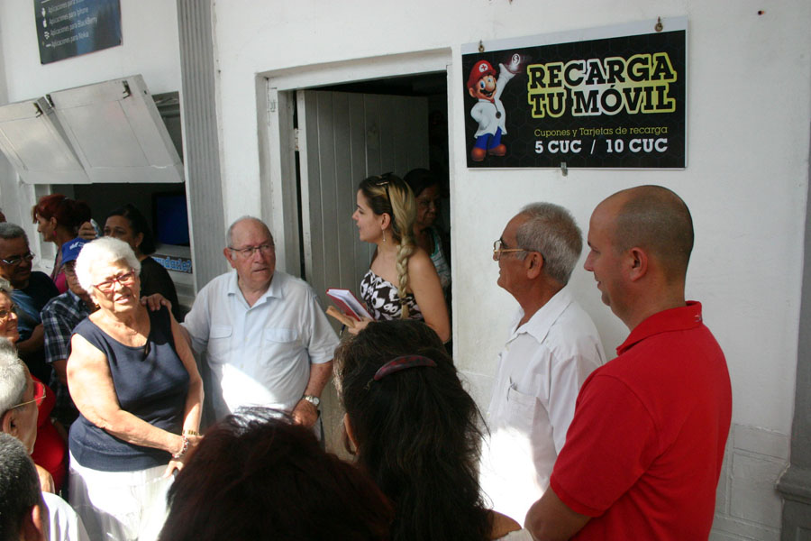 Un ameno diálogo con jóvenes trabajadores no estatales también tuvo lugar en el taller de reparaciones generales a teléfonos móviles Los doctores del celular, en el municipio de Centro Habana.