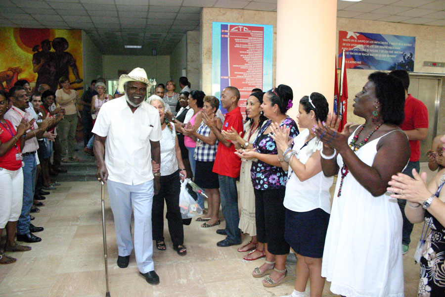 En la sede del movimiento sindical cubano, tuvo lugar la bienvenida “a estos hombres que representan tanta historia y hoy tenemos el honor de recibirlos”, como expresó Carmen Rosa López Rodríguez, segunda secretaria de la CTC, en el acto en el que participaron, además, miembros de su secretariado, dirigentes de los sindicatos nacionales, jefes de departamentos y trabajadores de esa organización.