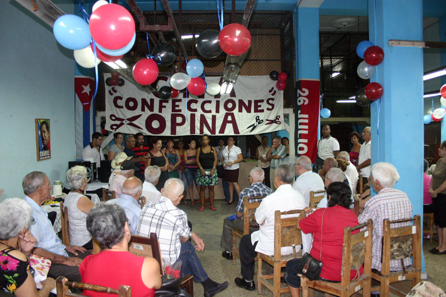 Los agasajados departieron posteriormente con el colectivo del taller de confecciones Opina, donde conocieron las características de ese centro integrado por 43 mujeres y 9 hombres y convertido en una cooperativa no agropecuaria desde el 2013 como parte de un nuevo modelo de gestión económica no estatal y cuyo objeto social abarca producción de prendas de vestir, ajuares del hogar, ventas mayoristas, costura a la medida, alquiler de trajes de novia y disfraces, según explicó su presidenta Doris Lázara Rodríguez .
