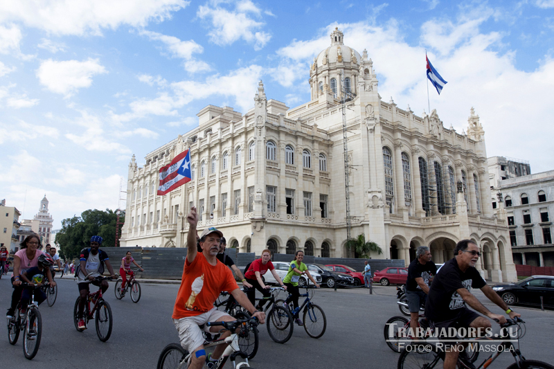 Convocados por la Sociedad Cultural José Martí y el Comité por la excarcelación del patriota puertorriqueño Oscar López Rivera, un nutrido grupo de ciclistas recorrió el sábado 19 de noviembre las principales arterias de La Habana. Profesionales de las más disimiles ocupaciones, estudiantes y cuentapropistas participaron en la jornada. La bici-caravana arribó a la Fragua Martiana, donde tuvo lugar el acto que sumó voluntades al reclamo por la liberación de Oscar.