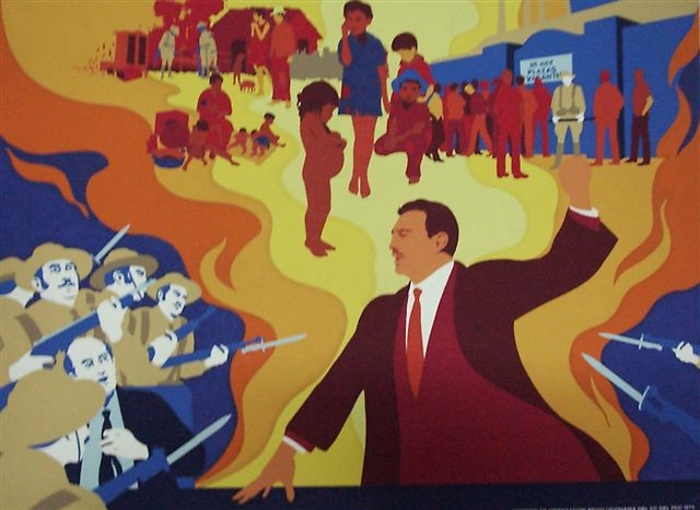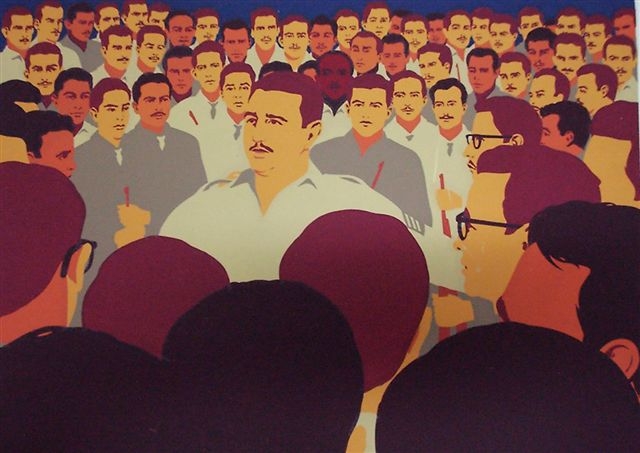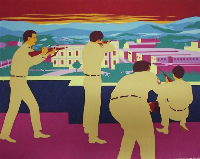 El pintor René Mederos (Las Villas, 1933 – La Habana, 1996) en un aniversario de las acciones del 26 de Julio realizó un recuento gráfico de los hechos, en carteles elaborados con la técnica de silk screen, del cual ofrecemos una selección.