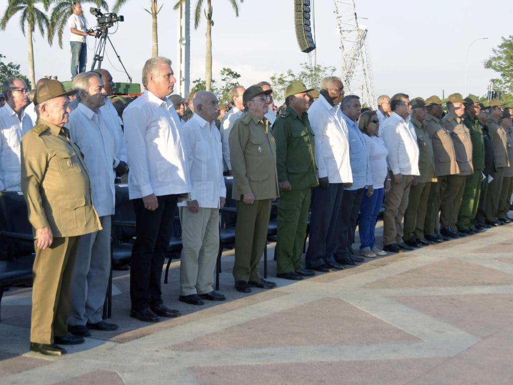 Minutos antes de iniciarse el acto Raúl, junto a José Ramón Machado Ventura, segundo secretario del Comité Central del Partido Comunista de Cuba; Miguel Díaz-Canel Bermúdez ,primer vicepresidente de los Consejos de Estado y de Ministros, Esteban Lazo, presidente de la Asamblea Nacional del Poder Popular, Julio Ramiro Lima Corzo, primer secretario del Partido en el territorio y otros dirigentes de la Revolución, rindieron tributo al comandante Guevara en el Memorial donde reposan sus restos y los de sus compañeros de guerrilla.