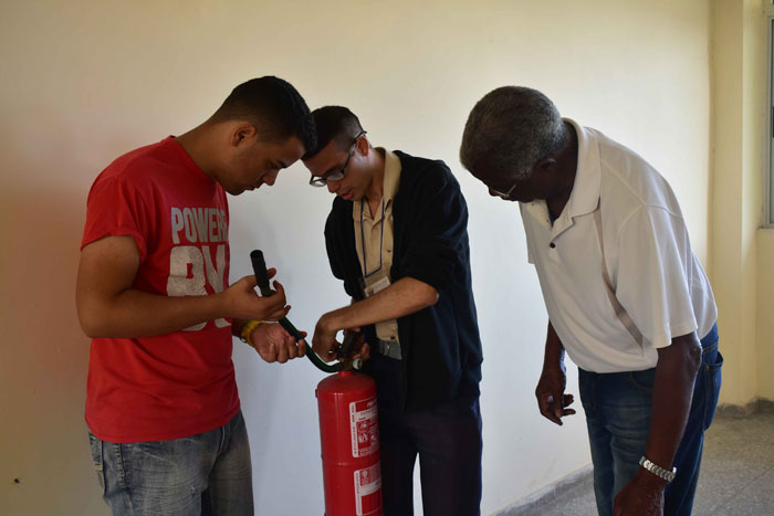 Cuidamos mucho la seguridad de los breakers, de los materiales combustibles que se encuentran en el centro, de que no haya salideros de gas en la cocina, de que no se fume en áreas donde está prohibido, y observamos los puntos de riesgo identificados en el edificio. Se trata de un trabajo diario, sobre todo para crear conciencia.