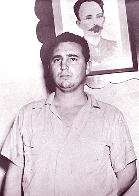 La imagen fue tomada en el Vivac de Santiago de Cuba y se convirtió en un símbolo: el jefe de las acciones del 26 de Julio aparece delante un retrato de José Martí, a quien calificó, en el juicio seguido posteriormente a los asaltantes, como el autor intelectual del Moncada.