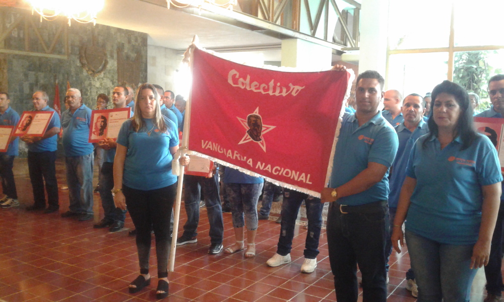 Por primera vez la Empresa Porcina Camagüey recibe la bandera Vanguardia Nacional, máximo galardón de orden colectivo que se entrega a los centros laborales, debido a la eficiencia económica y el sobrecumplimiento de su plan de producción de carne, a los resultados en el trabajo sindical y la pronta recuperación de sus instalaciones luego del paso del huracán Irma.