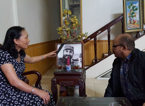 Así está Fidel en la casa de Huong, en Dong Ha. En el centro de un altar pequeño en tamaño, e inmenso en significado, la foto del líder cubano lleva una cinta negra adherida al extremo superior izquierdo. La imagen tiene detrás un árbol artificial que invoca la primavera, el renacimiento. En el frente hay dos vasos para las flores y las varillas de incienso que Huong le dedica todos los meses.