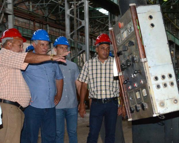 Allí, recorrió los talleres de maquinarias pesadas y de fundición, acompañado de Julio Lima Corzo, miembro del Comité Central del Partido y primer secretario de esa organización política en Villa Clara; Alberto López Díaz, Presidente de la Asamblea Provincial del Poder Popular, y otros dirigentes.