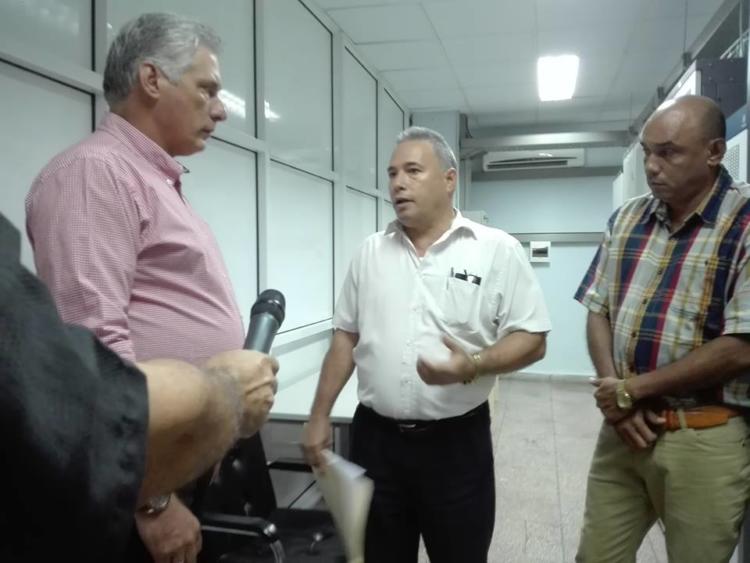 Luego de un recorrido por el lugar y en conversación con el ingeniero Gustavo Montesinos, Director Ejecutivo de ETECSA en Villa Clara, el presidente cubano se interesó por el restablecimiento del servicio y la actualización del equipamiento recientemente instalado.