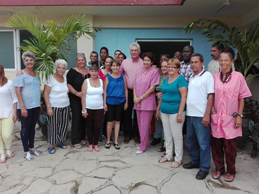 Acompañan al presidente cubano, el primer vicepresidente Salvador Valdés Mesa, los ministros de Salud, Educación, Industrias, Agricultura; así como las máximas autoridades de la provincia: Julio Lima Corzo, primer secretario del Partido y Alberto López Díaz, presidente del Gobierno.