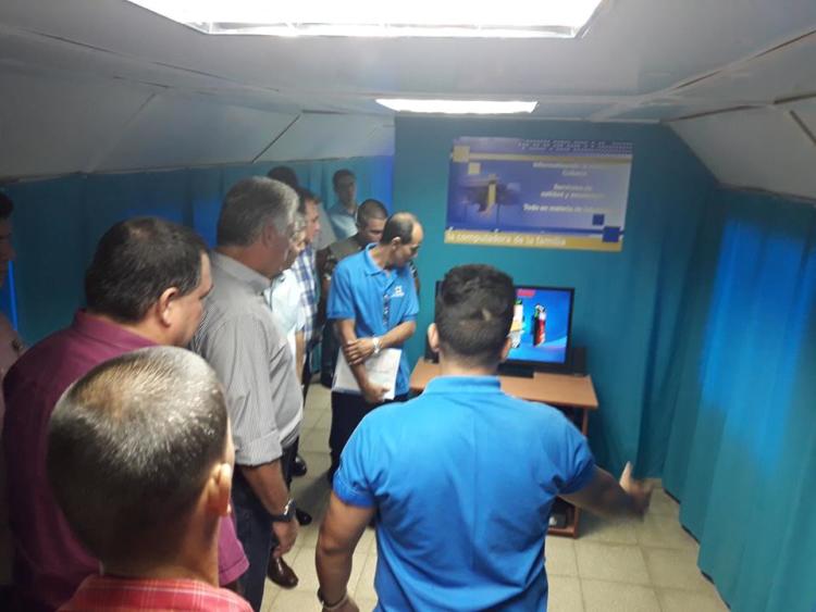 Luego Díaz- Canel visitó el Joven Club Móvil y el coche tecnológico de la provincia acompañado por varios vicepresidentes, ministros y directivos del gobierno de Ciego de Ávila.