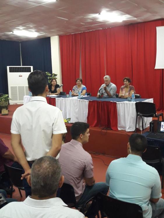 Según reporta el periodista Demetrio Villaurrutia de Radio Rebelde, Díaz-Canel intercambió con alumnos y profesores de la Escuela Raúl Corrales que forma docentes para la primera infancia, la secundaria y la primaria. Allí recibió una amplia explicación sobre el funcionamiento de este centro docente por parte de su directora.
