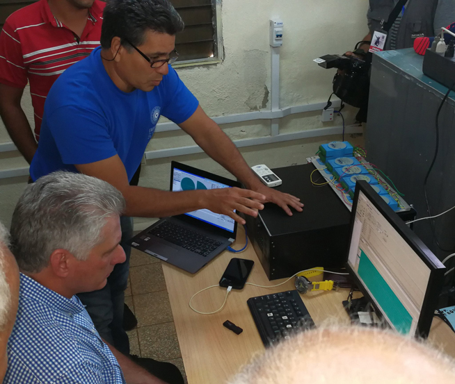 En el programa de visita gubernamental al territorio de Camagüey, el presidente de los Consejos de Estado y de Ministros, Miguel Díaz- Canel Bermúdez, estuvo esta tarde en el Centro Meteorológico provincial, con una larga experiencia en la actividad de innovación y desarrollo de software y hardware encaminada principalmente a los radares meteorológicos.