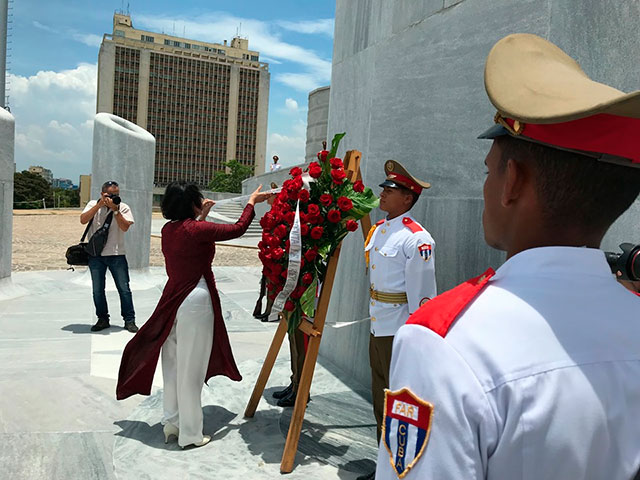 Unas horas antes, Dang Thi Ngoc rindió tributo a Ho Chi Minh, padre de la nación vietnamita, durante ceremonia solemne en el parque que lleva su nombre, en la capital cubana.
