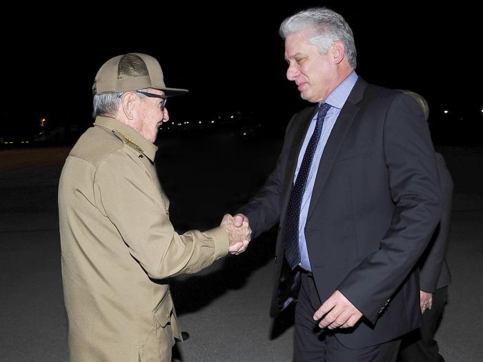 First Secretary of the Communist Party of Cuba Central Committee, Army General Raúl Castro Ruz, during the dawn hours today, received the President of the Republic of Cuba, Miguel Díaz-Canel Bermúdez, at José Martí International Airport, along with the delegation that accompanied him on a tour of several countries.