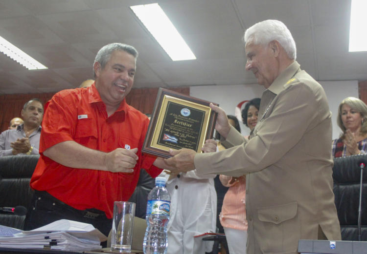 Por acuerdo del Secretariado Nacional de la Central de Trabajadores de Cuba, Ulises Guilarte De Nacimiento, miembro del Buró Político y Secretario General de la CTC, les entregó el sello Héroes del Moncada a los colectivos laborales Empresa Militar Industrial Granma, de la provincia de La Habana, la Empresa Constructora Militar No. 4 de la provincia de Matanzas y la Empresa Agropecuaria Militar del Oeste de La Habana.