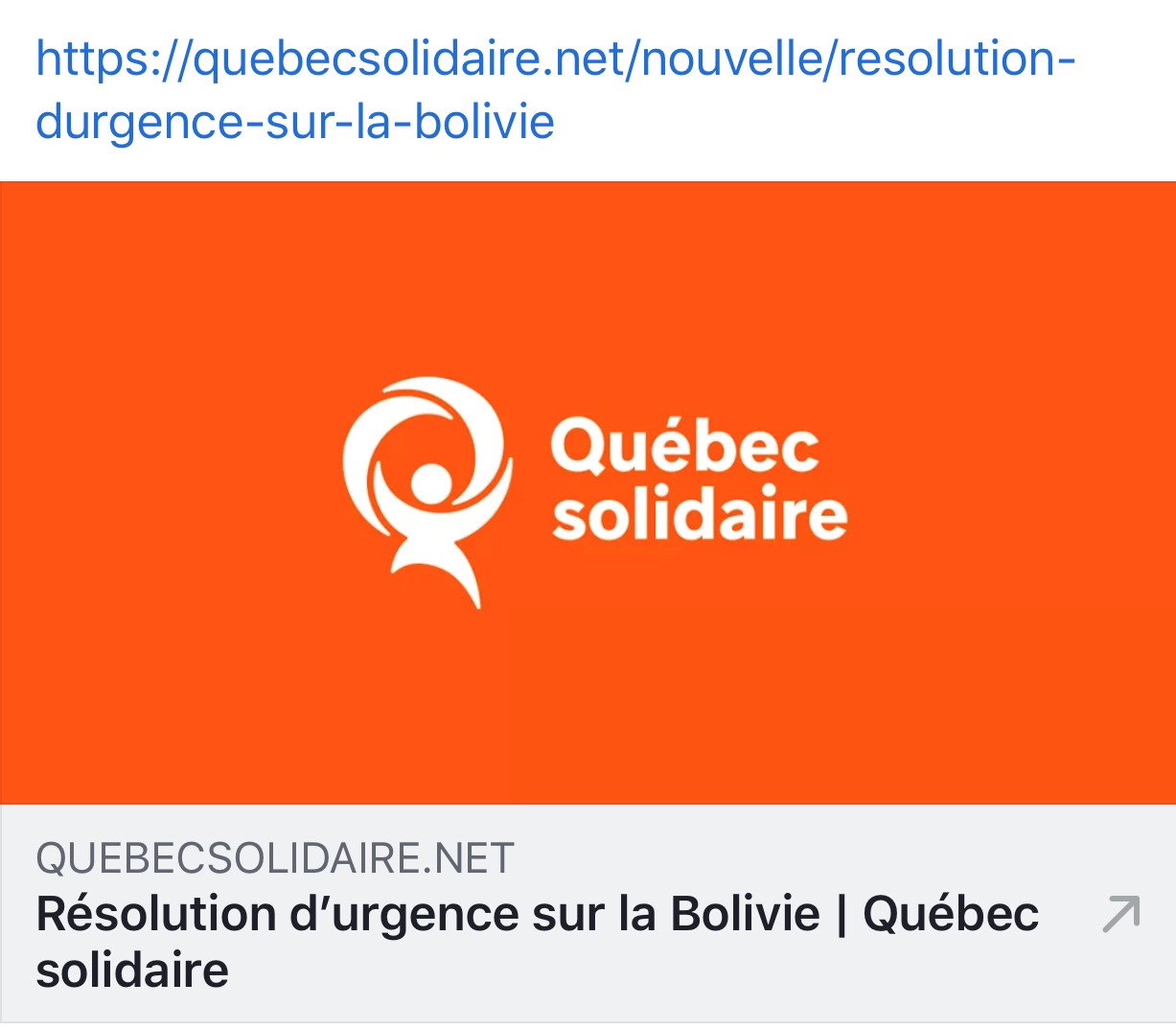 “Cupe hace un llamado al Gobierno de Canadá a fin de que reconozca y respete la soberanía del pueblo boliviano para determinar su propio futuro político, sin la presencia de militares e injerencia extranjera. También pedimos al Partido Liberal que deje de acatar las indicaciones de uno de los gobiernos más derechistas del mundo.