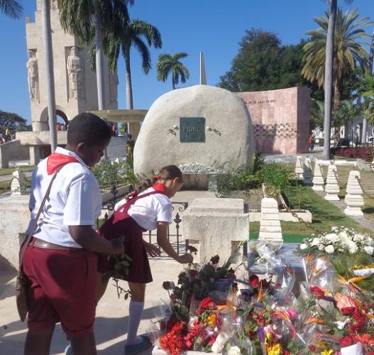 En las manos de los que apuran el paso para honrar a Fidel hay flores de todo tipo para depositarlas muy cerca del monolito que ocupa espacio en el llamado Altar de la Patria, sitio del cementerio de Santiago de Cuba en el que se alinean las tumbas de otros paradigmas de la libertad de la nación: José Martí, Héroe Nacional, Carlos Manuel de Céspedes, Padre de la Patria y Mariana Grajales, Madre de la Patria.
