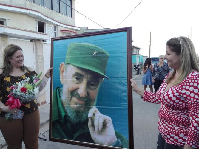 El agasajo tuvo lugar en el CDR número 5, de la zona 96 del consejo popular Cubanacán, en el municipio de Playa, donde además de un hermoso ramo de flores se le entregó un enorme cuadro con la imagen de Fidel, artífice de la solidaridad internacional.