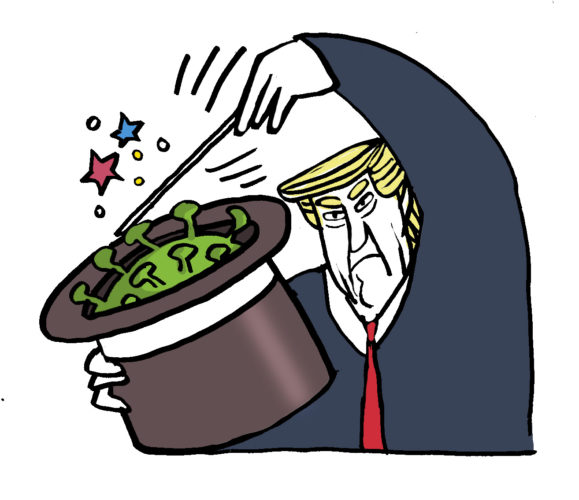 El primer caso confirmado con coronavirus en EE.UU. se anunció el 21 de enero. Al otro día en entrevista televisiva le preguntaron: ¿Hay preocupaciones acerca de una pandemia en este momento? El presidente respondió: “No. De ningún modo. Y lo tenemos totalmente bajo control”. [/spoiler][/row]