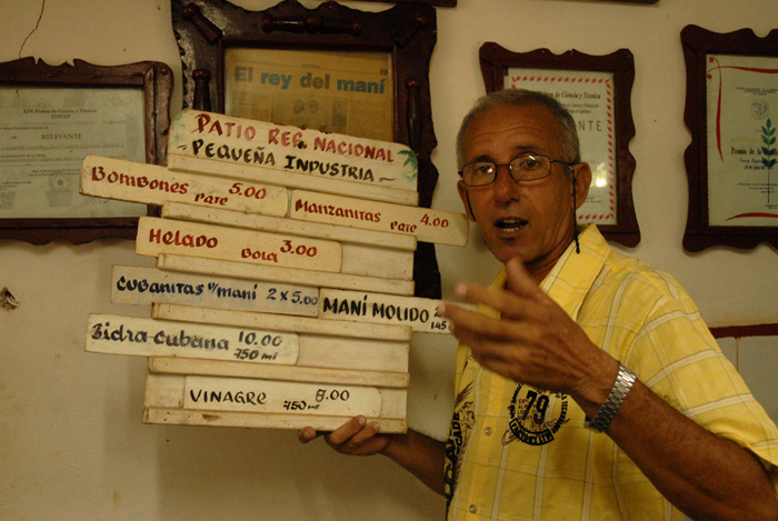 Lo descubrí en la ExpoANIR XX Congreso de la CTC, celebrada en Expocuba a inicios de año. Su propuesta, integrada por varios productos elaborados con maní, causó sensación entre los asistentes: manzanitas, empanadas, panecitos y turrones eran algunas de las apetitosas golosinas, que vendía a precios módicos.