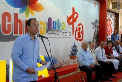 Momentos antes de la inauguración, el encargado de negocios de la embajada de la República Popular China en Cuba, Chen Ping. señaló que su país es el segundo socio comercial de la isla. En los ocho meses de este año – informó-el comercio bilateral sobrepasó los mil 400 millones de dólares.