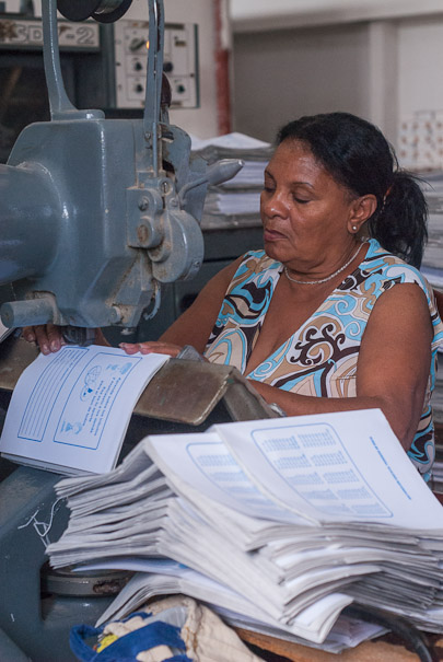 A lo mejor ahora Gladys González Hechevarría, una de las encuadernadoras que se encarga de la presilladora manual, pueda esperar la fecha de su ya cercano retiro. Pero, ¿será este el verdadero fin del problema?