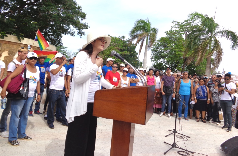 De regreso a la cabecera provincial, en la tarde se desarrolló una conferencia magistral a cargo de Mariela Castro, en la Universidad Pepito Tey, acontecimiento que resultó sumamente provechoso, ya que se hizo un devenir del porqué de las discriminaciones y su surgimiento, así como un análisis de la situación en la que se encuentra la región latinoamericana y la necesidad de renovación del Código de Familia en Cuba, un cambio absolutamente necesario. El público que participó, estudiantes y profesores universitarios en su mayoría, pudo intercambiar sus criterios, algunos absolutamente absurdos, como el de alguien, (omito nombre y procedencia) que manifestó no estar de acuerdo con la adopción por personas LGBTI (proceso que contempla el nuevo Código de Familia), argumentando los problemas que le traería al infante identificar los roles de mamá y papá, y dejando entredicho que el niño o la niña podría devenir en homosexual.
