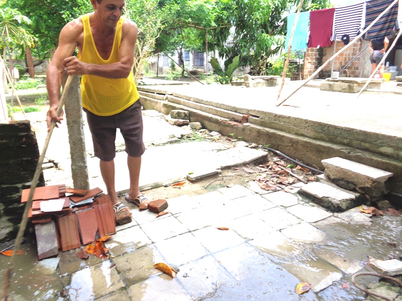“Hoy (el día de la visita) la ve estancada aquí, casi dentro del balcón y pegada a la cisterna, pero la mayoría de las veces corre y entra al caudal del río que va a la presa El Rincón, fuente de abastecimiento a parte de la ciudad”, advierte José Antonio Sardiña Arias, delegado del Poder Popular de la circunscripción 101, del consejo popular 6.