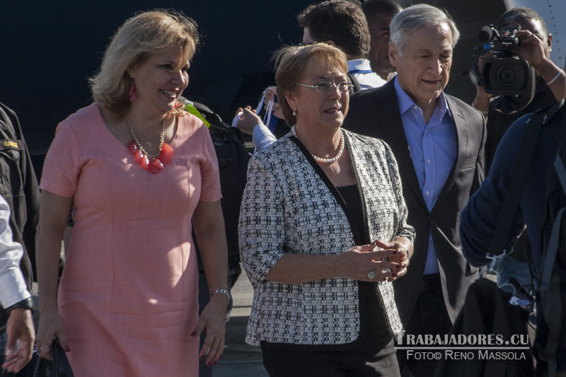 Presidente de Chile, Michelle Bachelet a su llegada al aeropuerto José Martí en La Haban. Foto: Reno Massola