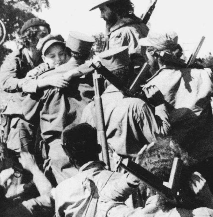 Como siempre confiaba en la victoria aunque todavía habría de recorrer un largo camino para alcanzarla. La promesa se cumplió. Al entrar triunfalmente a La Habana en la Caravana de la Libertad el 8 de enero de 1959, en el Cotorro, el Comandante en Jefe del Movimiento 26 de Julio pudo abrazar nuevamente al hijo. (Fuente: Núñez Jiménez, Antonio. En marcha con Fidel)