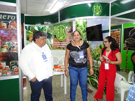 En el pabellón 5, del recinto de Rancho Boyeros exponen las entidades e institutos de investigación del Grupo Agrícola. Este miércoles fue un día especial, pues la Empresa Productora y Comercializadora de Semillas celebró su cumpleaños 56, con un brindis entre expositores y visitantes que se encontraban allí en horas de la tarde.