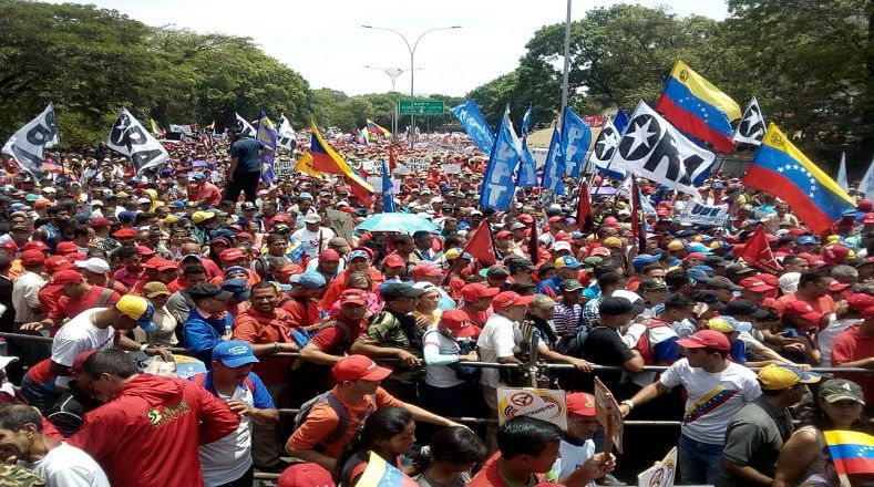 El pueblo venezolano se aglomeró en las calles de todo el territorio en franco apoyo al presidente Nicolás Maduro, ante el intento de golpe de Estado del pasado martes. Asimismo, la clase obrera aprovechó la oportunidad de esta fecha para defender la soberanía ante ataques foráneos y de la oligarquía nacional.