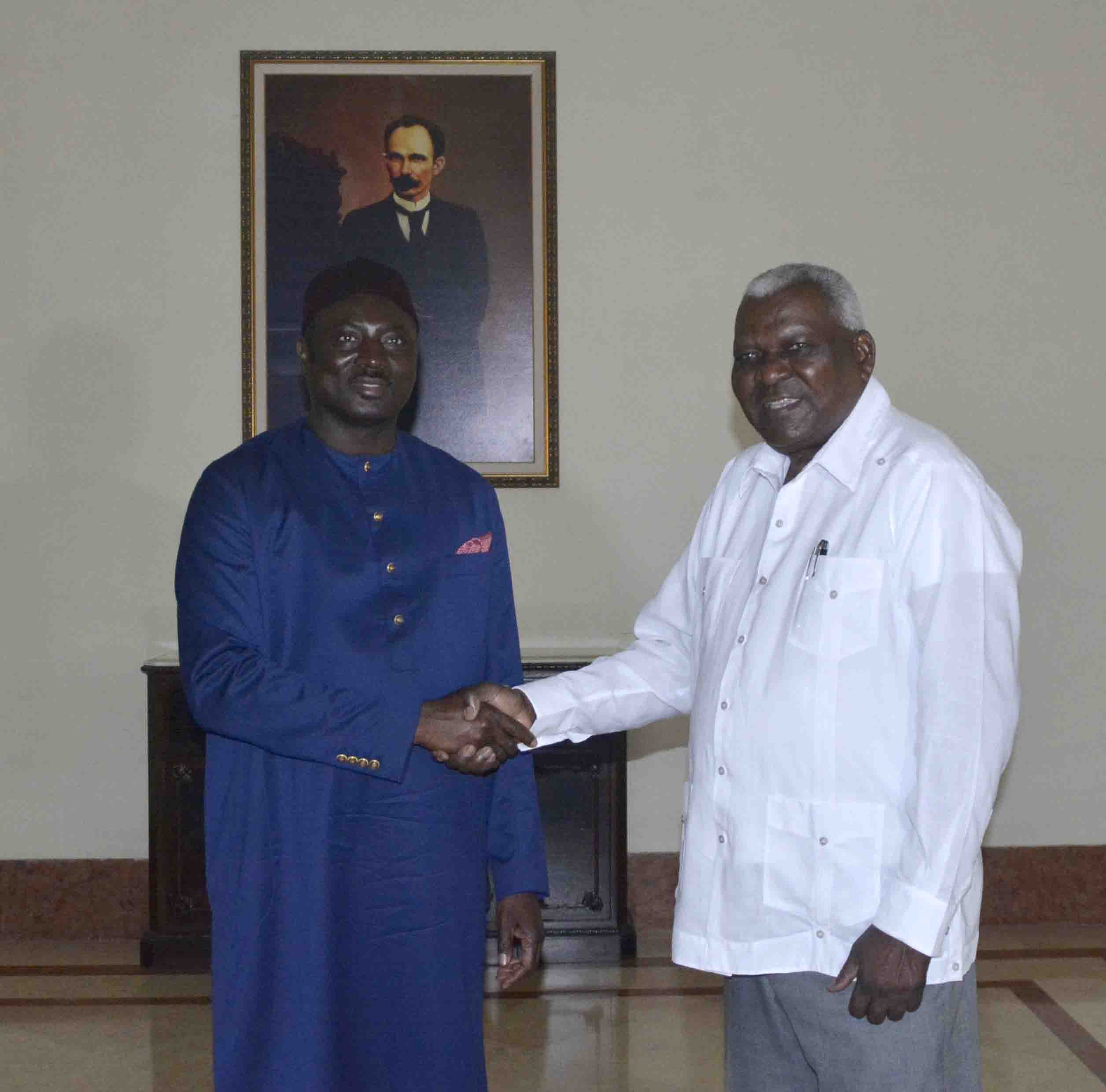 Esteban Lazo Hernández, presidente de la Asamblea Nacional del Poder Popular (ANPP), recibió este lunes a Mamadou Tangara, ministro de Asuntos Exteriores, Cooperación Internacional y Gambianos en el Exterior, quien realiza una visita oficial a Cuba.
