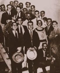 Parte del claustro de la Universidad Popular José Martí, en el que aparecen Mella y Villena.