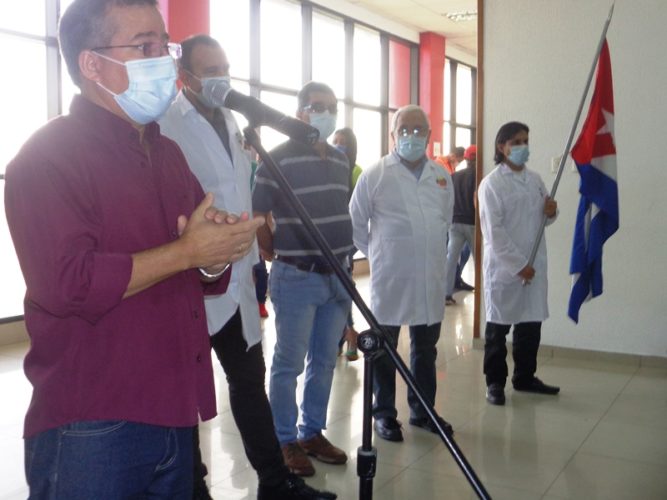 Esta es la cuarta brigada constituida en los últimos días para responder a la solicitud de reforzar las acciones y cortar la cadena de propagación del Sars-CoV-2 hecha a la colaboración cubana por la Comisión Presidencial de Enfrentamiento a la Pandemia, que es prioridad en la agenda gubernamental, dijo el doctor Reinol Delfín García Moreiro, jefe de la Misión Médica Cubana en Venezuela.
