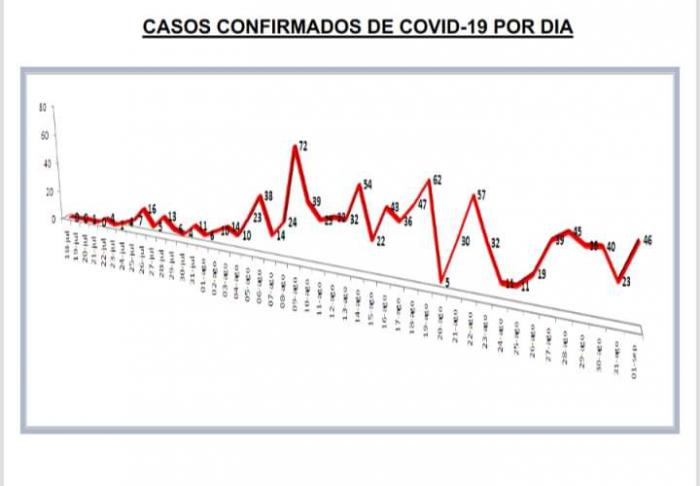 En el día de ayer, 1ro. de septiembre, en los laboratorios de la capital se procesaron un total de cuatro mil 202 PCR, de ellos se confirmaron 46 casos positivos, de los que cuatro corresponden a eventos abiertos, dos están relacionados con el del molino IMSA, de Regla, un caso en el ICRT y otro vinculado con la comunidad de Mantilla.