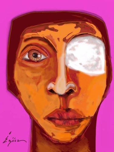 En octubre de 2019 estuvimos muy cercanos a todo lo que aconteció en Quito. Yo de alguna manera he estado muy ligado a movimiento indígena y fui parte de la creación de la Conaie (Confederación de Nacionalidades Indígenas). Ellos se convirtieron en actores políticos fundamentales y por eso nos dolió la represión inmensa de un gobierno deshumanizado que causó muertos y heridos y que en esa fecha vio a estos pueblos originarios como sus enemigos. He querido reflejar esa simbología de un gobierno represivo que nos ha vaciado los ojos y ha causado un gran sufrimiento al pueblo ecuatoriano. Yo estuve todos los días yendo permanentemente al Ágora de la CCE (Casa de la Cultura Ecuatoriana) y veía estos dramas del pueblo más digno y a la vez más pobre del Ecuador reclamando sus derechos. A través del arte lo único que me inspiraba era decir que este Estado de represión nos está quitando la mirada.