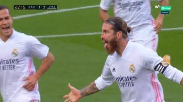 En la segunda mitad un penal de Lenglet sobre Ramos, cobrado por el propio jugador del Real Madrid, permitió que el club blanco se adelantara en el marcador al 63′.