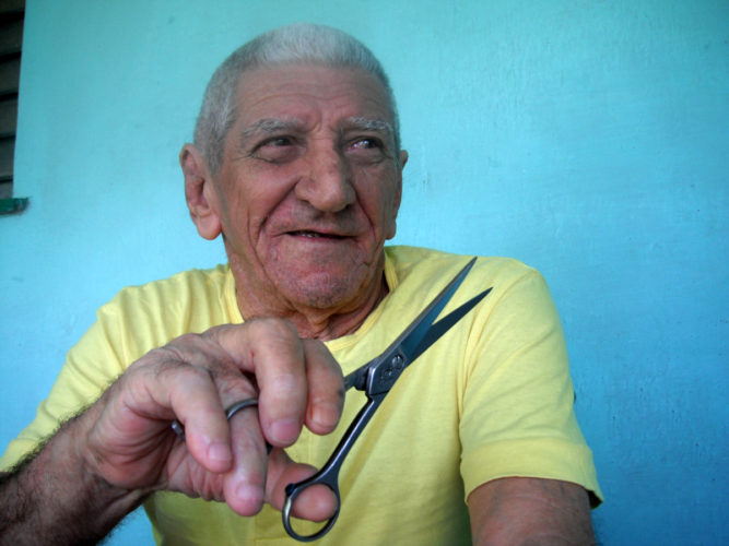 Los recuerdos vuelan en el hogar que con sus manos construyó. En el pequeño local que fungió como barbería en el barrio, escuchó los más increíbles cuentos, supo de nacimientos, vio crecer a sus hijos y partir a seres queridos. Era el único al que los viejos, y no tan viejos, entregaban su cabeza por el pelado que costaba 80 centavos. No tenía tampoco competencia. Solo el amigo Benito Acosta, ya fallecido, quien poco a poco se hizo de algunos clientes.