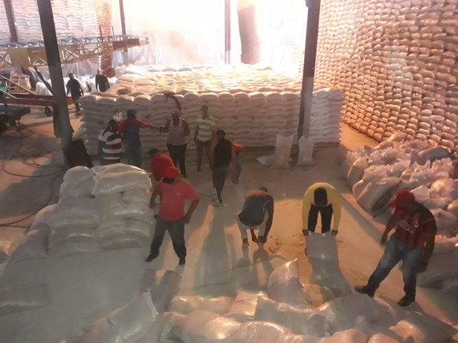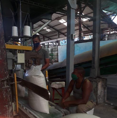 Entre las acciones iniciales realizadas por los sindicalistas estuvieron el ablandamiento de los sacos de azúcar, una actividad que apoya el desempeño expedito de la brigada de 17 trabajadores dedicados al empaque, estiba y venta del producto, que se endurece debido al intenso calor en los días actuales dentro del local de almacenamiento.