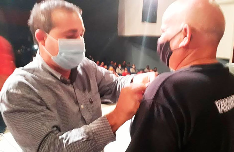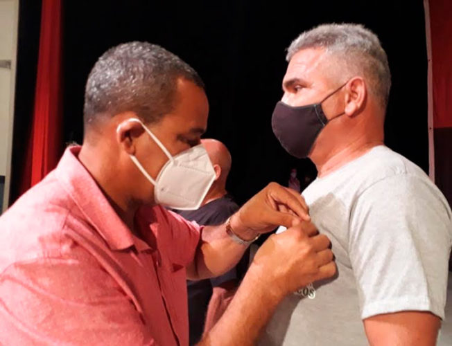 Un bello momento del agasajo lo constituyó la entrega de la medalla Jesús Menéndez a cinco trabajadores, entre ellos maestros de la construcción, así como también el carné del Partido y de la UJC a varios empleados de la vanguardia de esos colectivos.