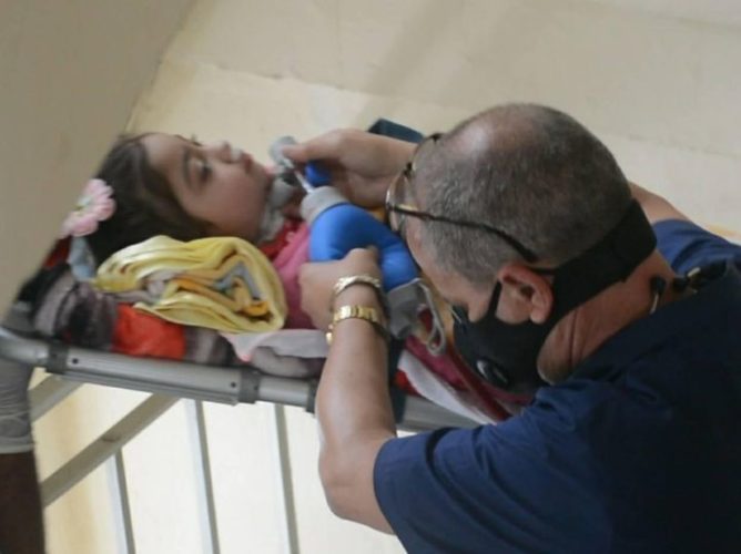 Incluso, al seguir minuto a minuto el evento, y humedecernos los ojos por la ternura del Doctor Enryque Padrón Álvarez, quien “manipulaba el resucitador Ambú (Unidad de ventilación manual) para que a la pequeña Yaslin Calderín López, (de 4 años, con una enfermedad degenerativa del Sistema Nervioso Central), no le faltara el equipo de ventilación mecánica artificial, mientras dos rescatistas cargaban la camilla desde el tercer piso.