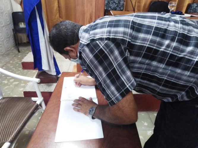 En la jornada algunos de los educadores que participaron en el enfrentamiento a los sucesos vandálicos del pasado 11 de julio firmaron el Libro de Honor “En defensa de la Patria”, volumen que busca reconocer la valentía y los principios revolucionarios de todos los que participaron.