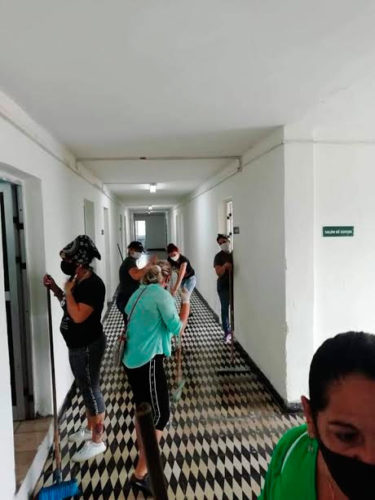 Con el propósito de ampliar las capacidades hospitalarias en la provincia de Villa Clara, dirigentes sindicales y trabajadores de diferentes sectores participaron en el acondicionamiento como hospital para el tratamiento de pacientes positivos de COVID-19 del policlínico Marta Abreu, de la ciudad de Santa Clara.