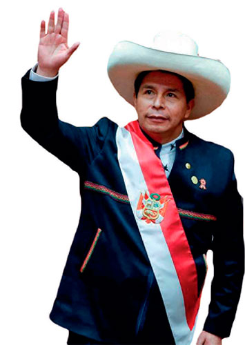 En los 200 años de república, el Gobierno de Perú ha tenido una docena de presidentes juristas y medio centenar de activos, o jubilados, de las Fuerzas Armadas. Los demás han sido hacendados, ingenieros, médicos, empresarios, economistas, arquitectos y un sacerdote. El pasado 28 de julio, cuando la nación festejaba el bicentenario de la independencia proclamada por el generalísimo José de San Martín, asumió el primer maestro, Pedro Castillo Terrones, de origen campesino para rematar. Acudió a la ceremonia de entrega de los símbolos constitucionales con el sombrero chotano de paja de palma que le acompañó toda la campaña.